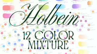 最初に選んだホルベイン12色の透明水彩色見本と混色記録