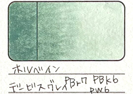 が、ひとつホルベインのイエローグレイという色については、イエローもグレーもついているのに緑のページに載せてあります(←オリーブグリーン系統の色に思えたので)。