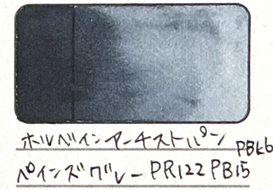 ランプブラックPBk6と(ホルベイン)ロイヤルブルーPB60の顔料の混色。