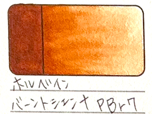 ホルベインのバーントシェンナよりもオレンジがかっています。