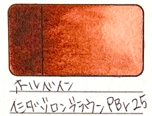 PBr25顔料の茶色(透明感のある赤紫がかったブラウン)