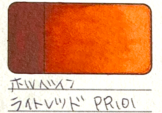 バーントアンバーを持っている上で、もう一つ(ホルベイン)バーントシェンナかライトレッドのどちらかを買うとしたら、こちらのライトレッドの方がはっきりとした赤茶色なのでバランスが良い気がします。