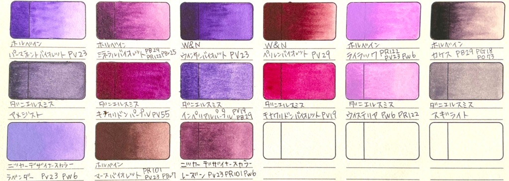 紫色の透明水彩絵の具を資料として残しておきます。