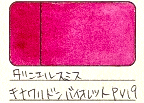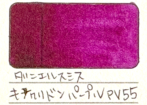 顔料的には、赤のページに載せてあるキナクリドンレッド等と同じものですが、キナクリドンバイオレットは赤紫色をしています(画像よりも実際の方がもう少し青みがかってみえます)。