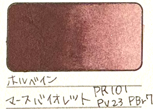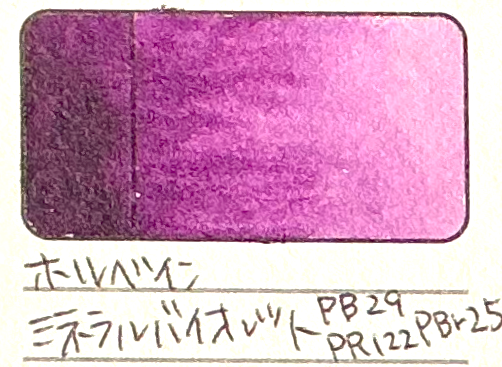 メーカーが違いますが、ホルベインのミネラルバイオレットとマースバイオレットを混ぜたような、両方の良い所取りをしたような色をしています。