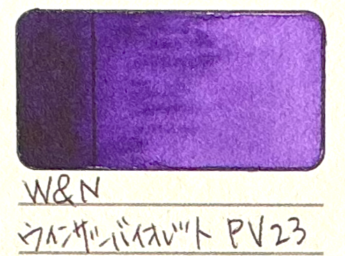 ホルベインのパーマネントバイオレットと同じ顔料表記がされていましたので同じ色といえば同じ色なのですが、W&Nさんのウィンザーバイオレットは滑らかで濃いです。