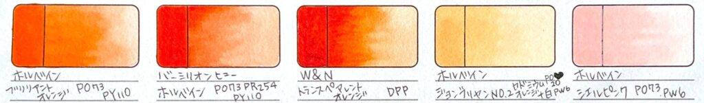 色々なメーカーのオレンジもとても気になっているので買い足すこともあるかもしれませんが、今のところW&Nのトランスペアレントオレンジに惚れているのでしばらく買わないかもしれません。