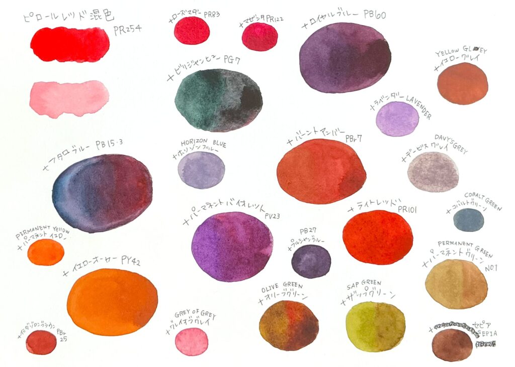 今回はピロールレッドに焦点を当てて混色していきました。